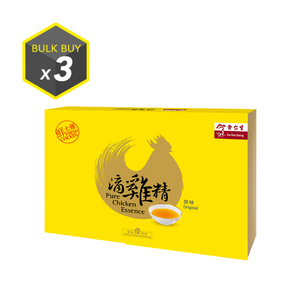 Water and colours are added to traditional essence of chicken and it contains a gamy taste. However, Eu Yang Sang Pure Chicken Essence is made from fresh chicken with no added water, flavours, colours or preservatives. It contains essence of a whole chicken to preserve its original flavor and delicious taste.