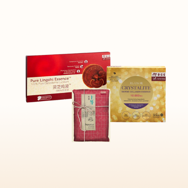 2x Assorted Soups 1x Crystalite Marine Collagen Essence 1x Pure Lingzhi Essence